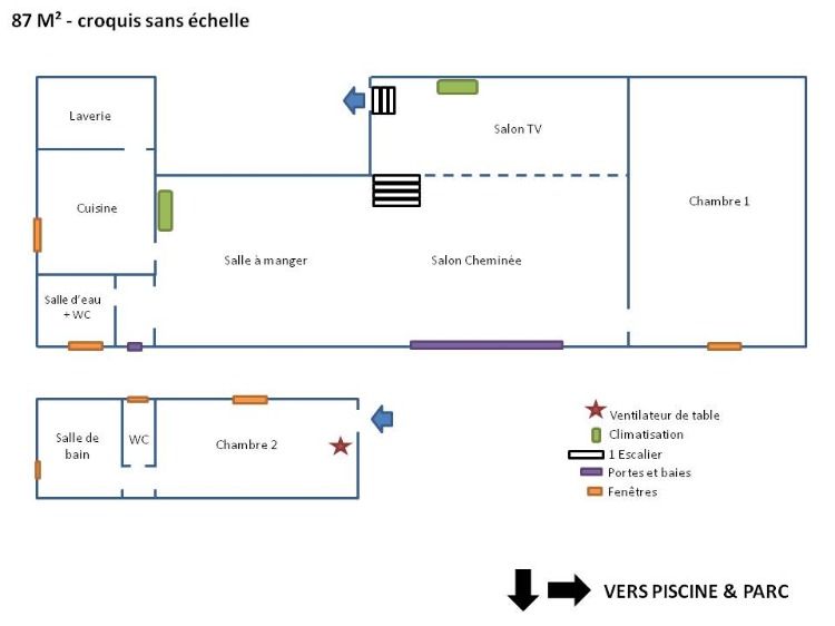 Equipement bébé | Chauffage central | Douche | Baignoire | Cheminée ou poêle à bois | Ventilateur | Climatisation | Livres de bibliothèque | Jeux de société |