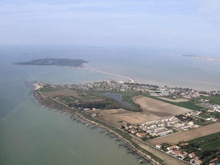 vue de la presqu'île avec "passe aux boeufs", donnant accès à l'île madame, la plus petite des îles charentaises