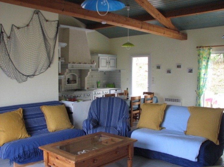 La salle à manger compte une grande table,possibilité au moins 8 personnes et un buffet enfilade, le salon offre deux canapés dont 1 convertible, fauteuil, rocking chair, table basse, meuble TV, télévision avec TNT, radio avec lecteur CD.