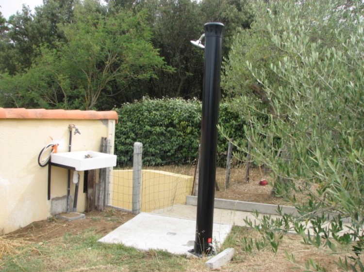 douche solaire qui est maintenant cloisonnée