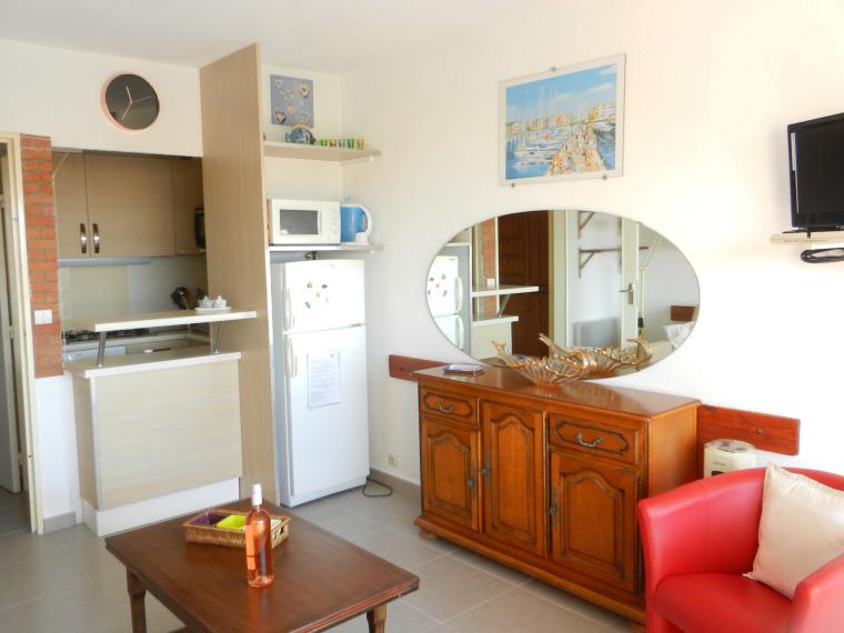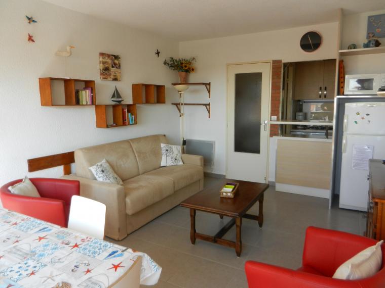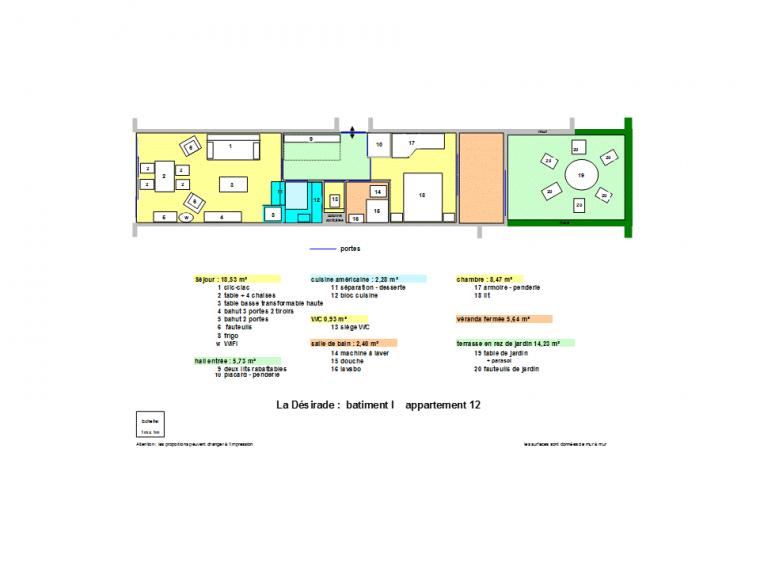 La superficie de l’appartement (38,34 m2 habitables) ne comprend pas la superficie de la véranda (5,64 m2), ni de la terrasse privative (14,23 m2). Appartement entretenu et propre à l’arrivée des locataires. Il est prévu pour seulement 4 personnes.Les clés sont données par le propriétaire ou une personne mandatée par lui
