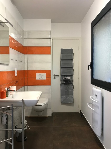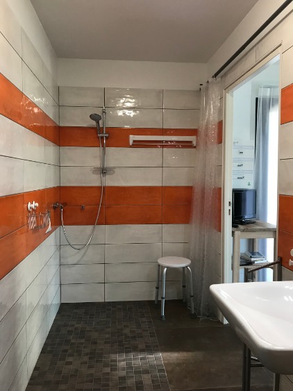Voir les 11 photosChambre-studio Orange en RDC, meublé de tourisme 3* avec salle d’eau privative (6m², douche italienne ouverte, lavabo et wc suspendu), en chambres d’hôte, réel lit Queen size escamotable en canapé 3 places, cuisine privative et dinatoire, coin salon.