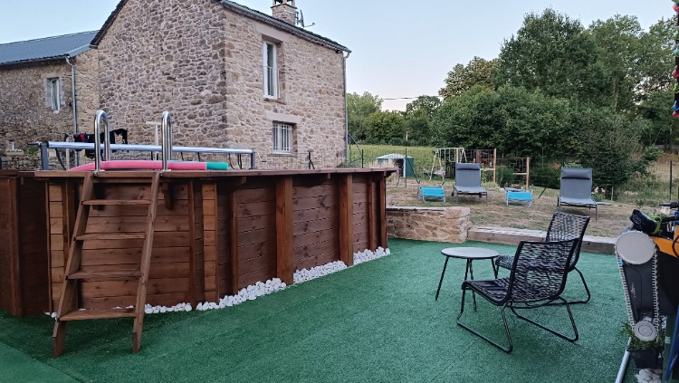jardin privé clos (3000m²), piscine chauffée hors sol (3 x 5m, prof 1,2m) clôturée et sécurisée (accessible de mai à septembre),