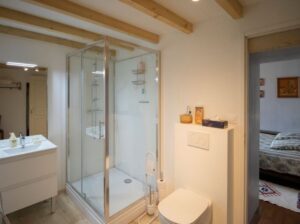 Voir les 24 photosLe gîte dans “la maison du bouchonnier” est une maison en pierre et naturellement fraîche en été, il y a aussi un ventilateur mobile dans chaqu’un des 3 chambres à l’étage. La plus grande chambre 25 m2 “la chambre des parents”a une salle de douche, lavabo et wc attenante. Deux des trois lits sont équipés d’un sommier électrique, l’autre lit à un sommier à lattes, les lits font 160×200 cm, Il y a un second salle de douche (Italienne), lavabo, wc au rez de chaussé où il y a aussi une piece télévision (Smart télé) dans cette pièce il y a un canapé convertible si le monté de l’escalier pose problème. Le télétravail est possible car le Wifi fonction impeccablement bien grace à la fibre un livebox 6 et une antenne dans le gite. Déjà plusieurs expériences par exemple dans le cadre d’une recherche de maison à acheter oui ou non lier à une mutation de travail dans ce cas un bail mobilité est possible. Chauffage central au gaz de ville.