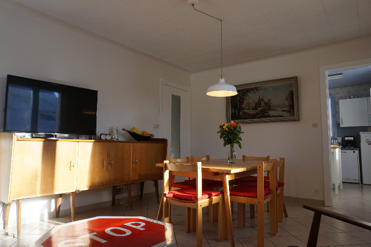 La maison comporte trois chambres, une salle à manger, une cuisine et une salle de bain. Au sous-sol : lave-linge et fils à linge.