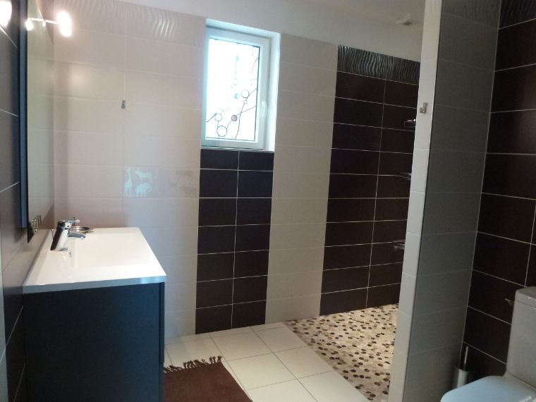 La grande chambre a sa salle d’eau particulière avec douche italienne.