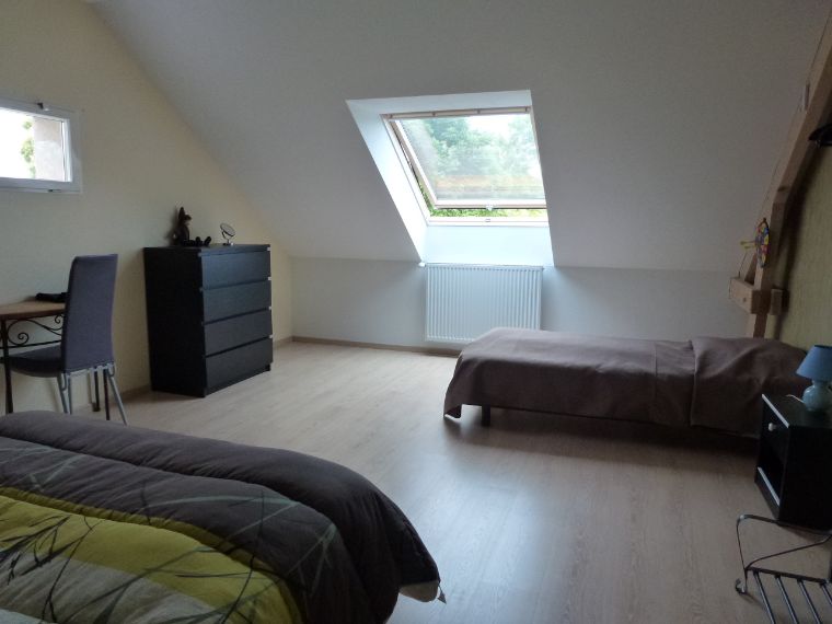 A l’étage nous accédons à une grande loggia de 35m2 qui dessert 2 chambres et une salle d’eau.