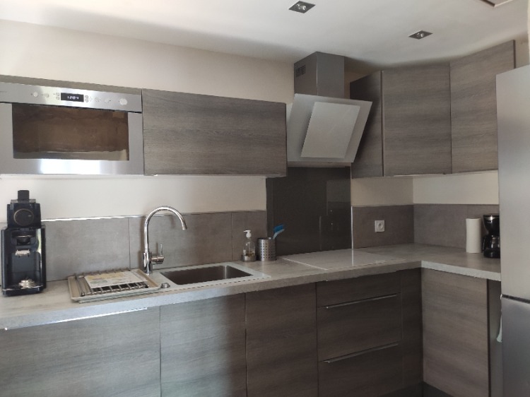 Voir les 9 photosapres le portail de l entree qui donne sur une petite et intime cour de 30m2 , vous accedez dans la piece principale voutee , enduite a la chaux. la cuisine separee avec tout le confort necessaire .