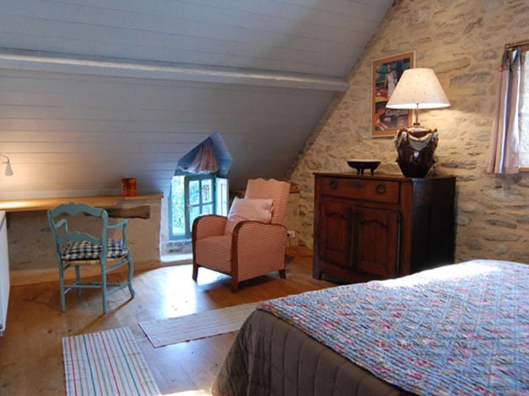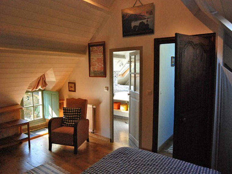 Le palier déssert 2 chambres aux couleurs douces qui marient le bois de châtaignier du parquet, aux lambris et tissus en lin (literie de qualité 160×200, séparable à la demande en 2 lits de 80×200), ainsi que 2 salles de bains : Chaque chambre dispose de sa propre salle de bain avec douche, lavabo et wc.