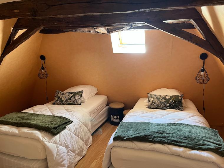 L’étage 2 chambres dont 1 avec 1 lit 140/190 et l’autre 2 lits de 90 cm.