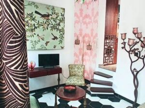 Un salon, une cuisine ouverte, un patio, un salon de lecture ou de travail, une salle de douche, une chambre composent cet endroit atypique sur 3 niveaux