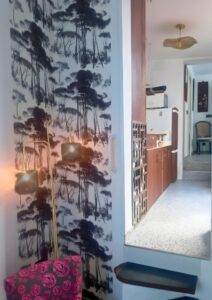 Un salon, une cuisine ouverte, un patio, un salon de lecture ou de travail, une salle de douche, une chambre composent cet endroit atypique sur 3 niveaux