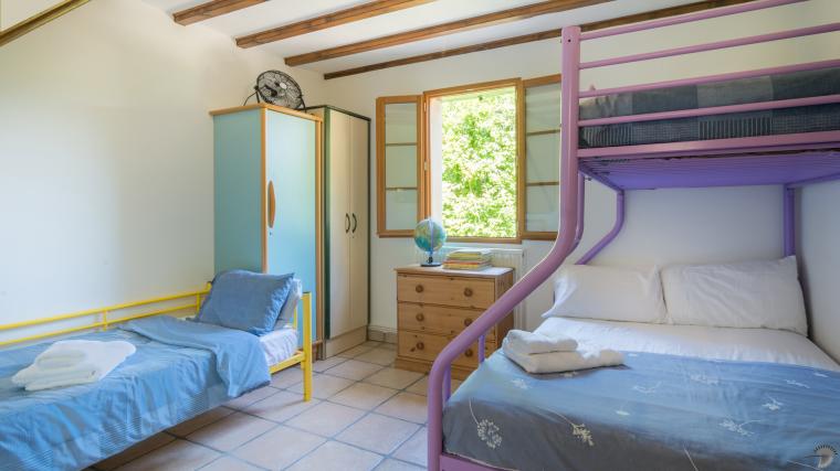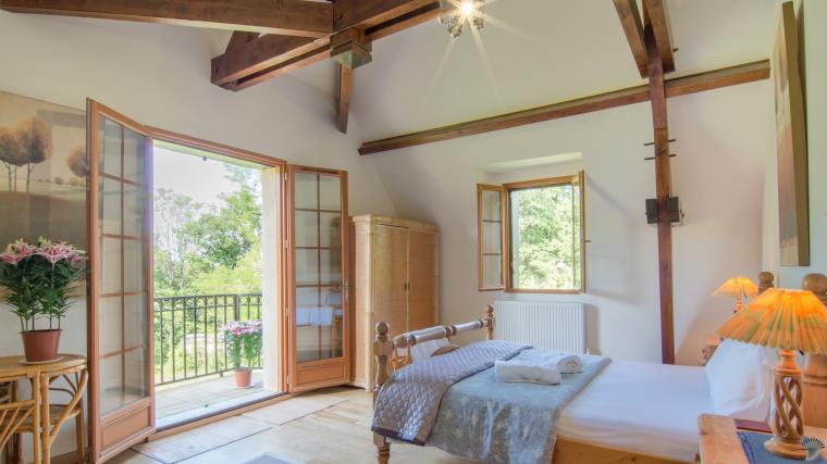 Les chambres, dans l’ancienne partie du bâtiment, sont équipées de grand lit à baldaquin en suite (avec leur propre balcon) et des poutres apparentes. Une chambre d’enfants confortable peut accueillir jusqu’à 3 personnes. Une cinquième chambre « loft » avec poutres apparentes offre un couchage supplémentaire pour un adolescent. Il y a amplement d’espace pour une ou deux familles élargies.