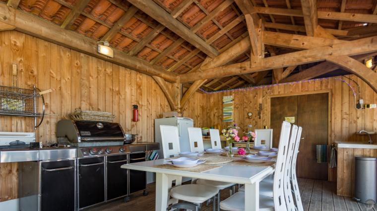 Pendant votre séjour, vous pourrez profiter de l’utilisation exclusive de la grande (12m x 6m) piscine chauffée. Dans cette espace piscine, une cuisine d’été permet de préparer, cuisiner et partager ses repas entre amis. De nombreuses chaises longues permettront de profiter du soleil (ou de l’ombre). Douche, toilettes et des jeux vous inviteront à profiter pleinement de cet endroit de détente.