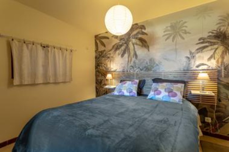 chambre côté jardin avec lit Queen size , rangements et occultation