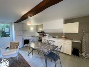 Le gîte se compose d’une pièce de vie de 20m2 avec coin cuisine et coin salon avec télé et wifi.