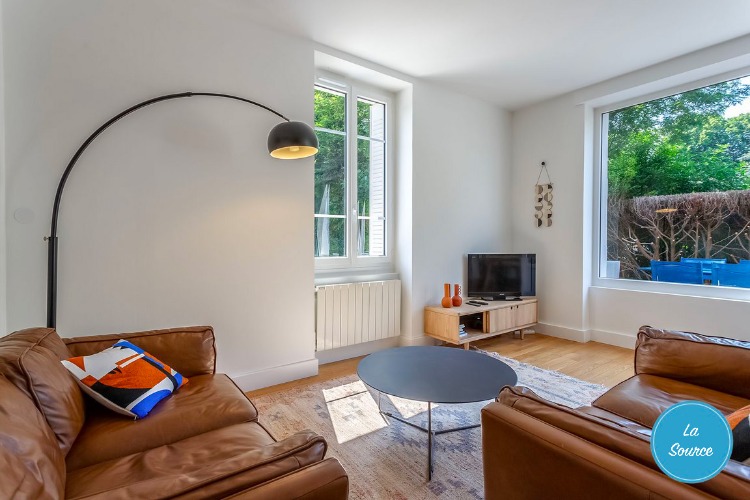 Voir les 9 photosGrand salon lumineux orienté plein sud, avec accès à une terrasse en bois.