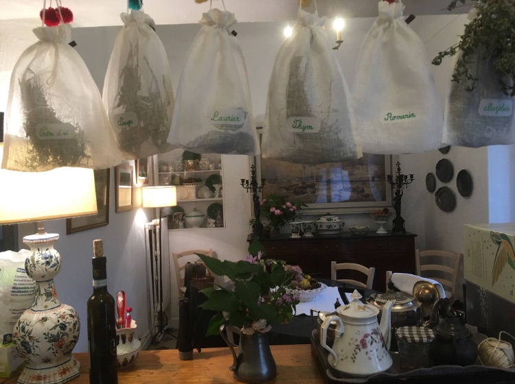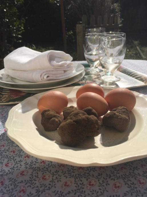 Huile, olives, fruits confits, légumes et fruits de saison et, l'hiver, truffes