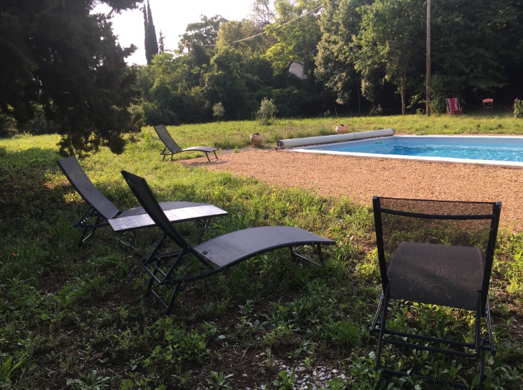 Dehors: maisonnette avec local piscine, machine à laver, weber, matériel de jardin