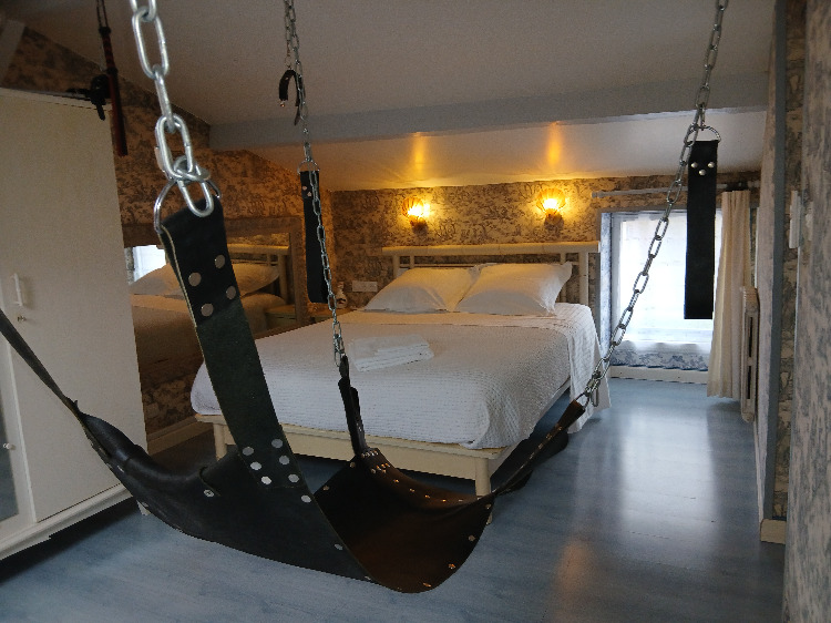 Voir les 11 photosDeux chambres, la chambre sling et la chambre cheval d’arcon. L’établissement disposant de la licence restaurant, la table d’hôtes vous sera proposée le soir : menu unique 25 € sans les vins, alcools, café, thé, tisane. L’établissement disposant de la licence 3, un bar débits de boissons existe pour les hôtes. Toute la propriété est naturiste. Salon de massage tantrique sur rdv par téléphone.