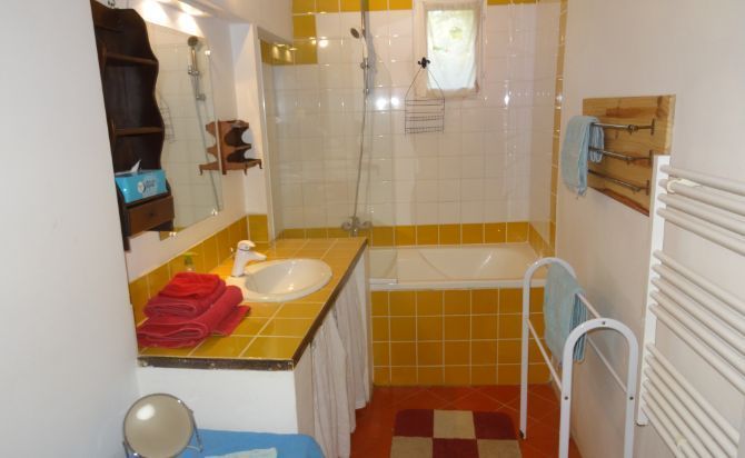 – Salle de bain de 5 m2 avec baignoire, wc et lave-linge.