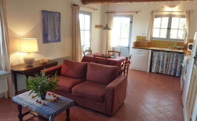 C’est une maison de plain pied de 55 m2 située à 50m de la maison du propriétaire et sans aucun vis a vis.