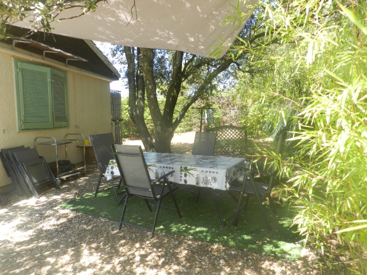 Terrain clos avec piscine de 8/4 privatisée. 6 transats à l’ombre du pin.