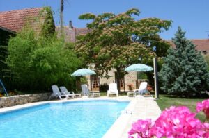 Elle possède sa propre piscine de 10 X 4.5m, profondeur de 1.00 à 1.70m, clôturée, sécurisée, chauffée, de mi-juin à mi-septembre uniquement, ceci dans un souci économique et écologique, avec escalier et à usage exclusif du gîte.