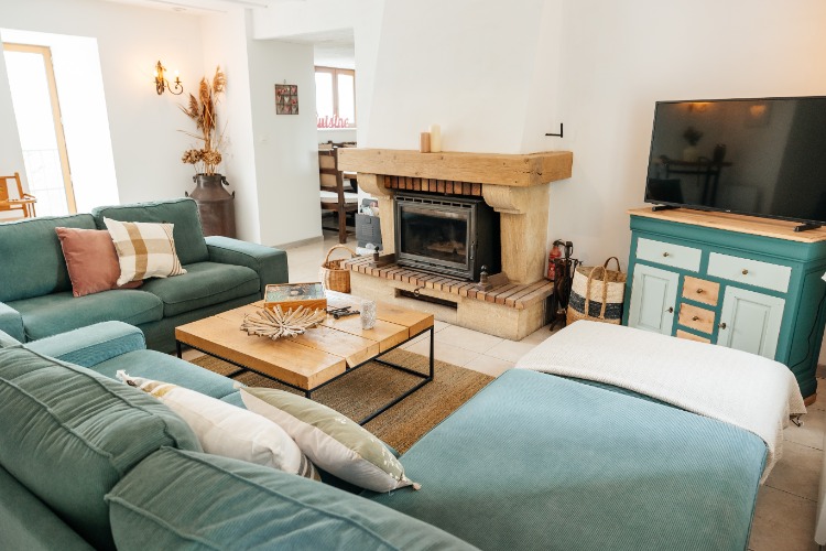 Spacieux salon avec cheminée insert, TV, 1 chambre avec lit couchage 140 X 190
