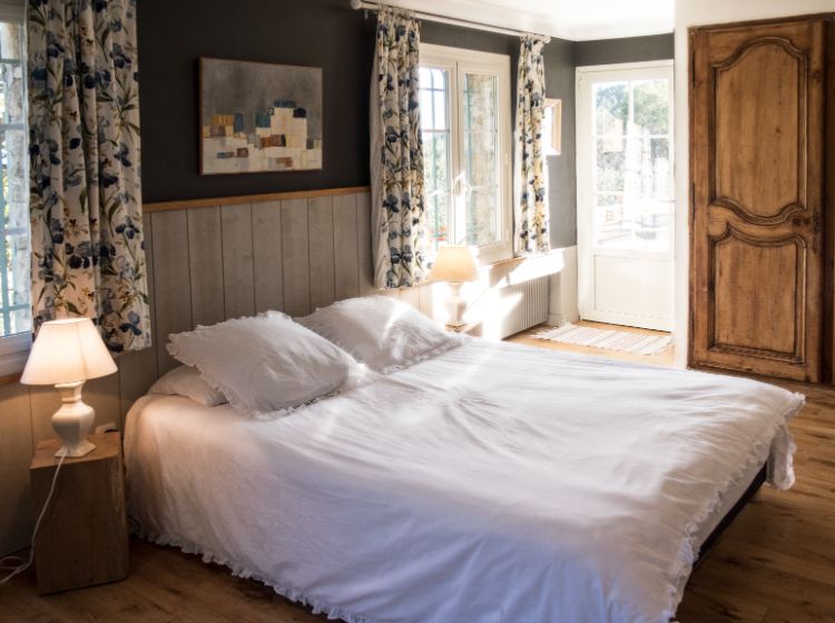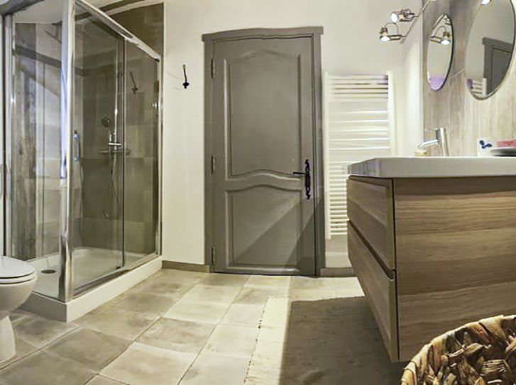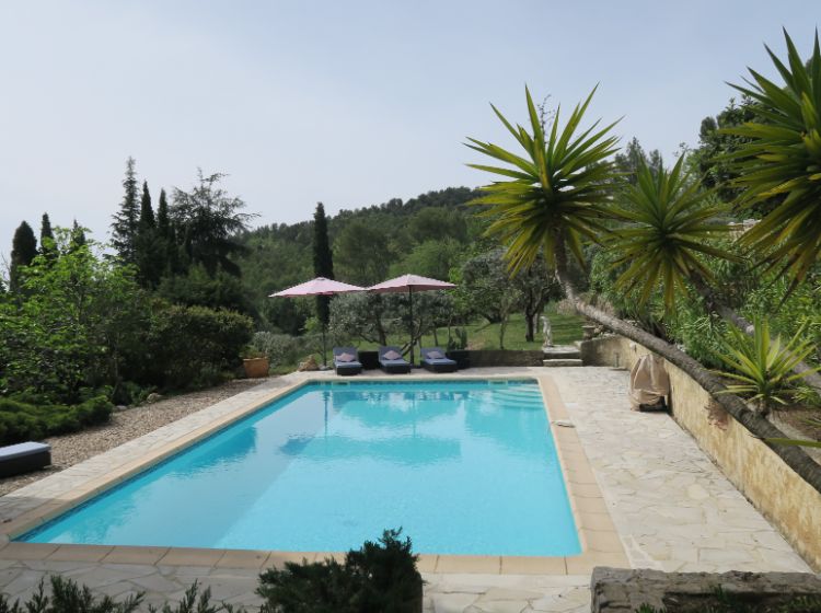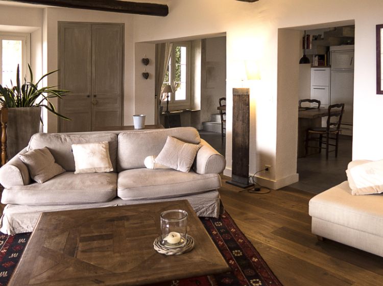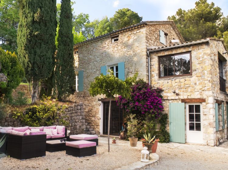 Le mas a été entièrement restauré et modernisé en 2017, dans le respect du style provençal. Une grande cuisine aménagée ouvre sur une cuisine extérieure sous abri, idéale pour déjeuner en été. Le double salon, avec son coin cheminée et le coin lecture, ouvre par une grande baie vitrée à galandage sur la vallée de Fayence.