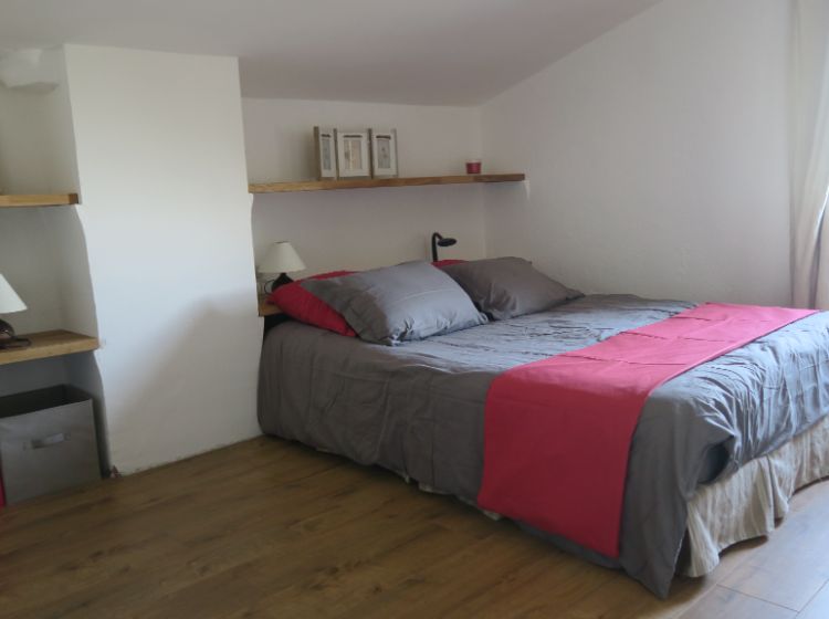 Au rez de la terrasse principale, une grande chambre climatisée avec salle de bain privée, un bureau, une lingerie avec WC. Equipement pour BB disponible, lit, chaise haute, baignoire, pot.