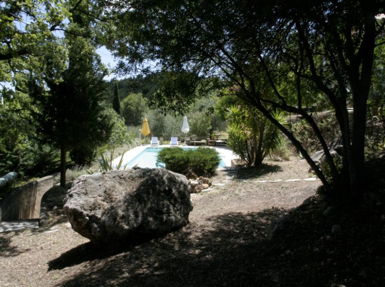 La piscine de 11m X 5,5 m est sans vis à vis, nichée dans la végétation (lauriers roses, cyprès, oliviers) l’eau est chauffée à 26C°.