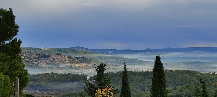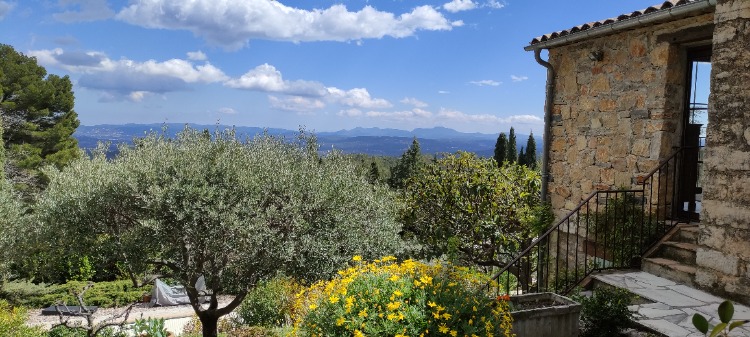 Le mas se dresse sur la colline, face à une superbe vue sur la vallée de Fayence, l'Esterel, le Tanneron.