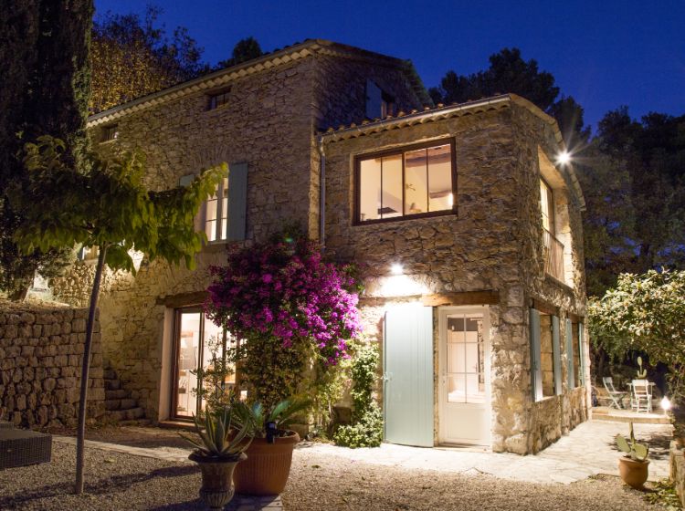 Le mas a été entièrement restauré et modernisé en 2017, dans le respect du style provençal. Une grande cuisine aménagée ouvre sur une cuisine extérieure sous abri, idéale pour déjeuner en été. Le double salon, avec son coin cheminée et le coin lecture, ouvre par une grande baie vitrée à galandage sur la vallée de Fayence.