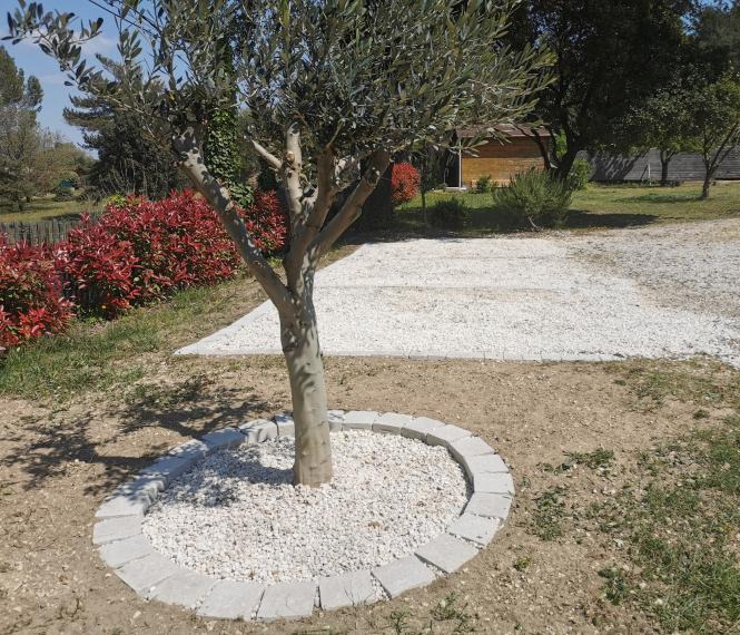 Un emplacement pour stationner le véhicule est prévu à l’intérieur de la propriété qui est fermée par un portail électrique. Un abri est possible pour les vélos et les motos.
