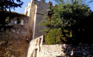 Domine un vieux village ceint de remparts avec ruelles tortueuses – Commerces de proximité dans le village.