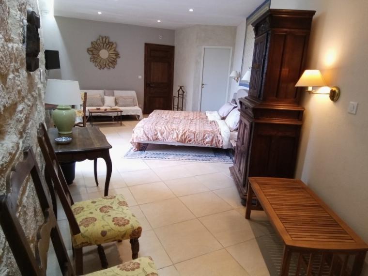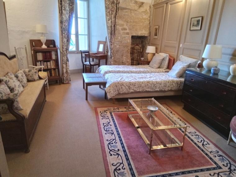 La maison est composée de 2 appartements superposés, le tout faisant 400 m². Chambres de tailles diverses