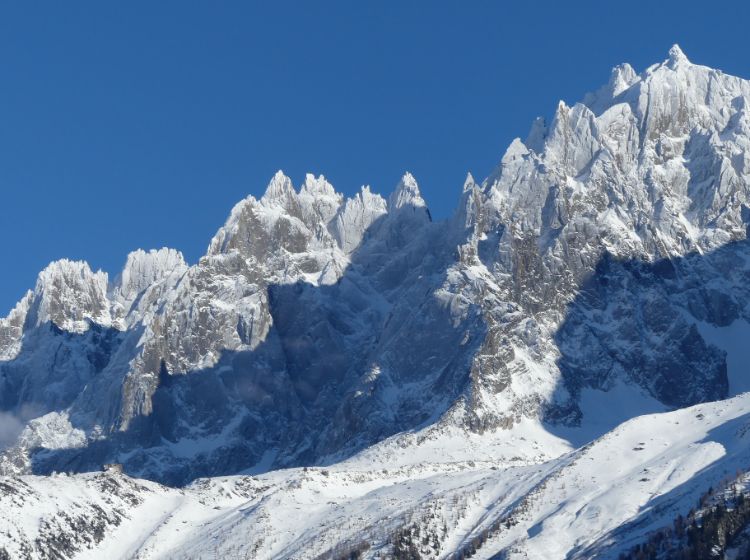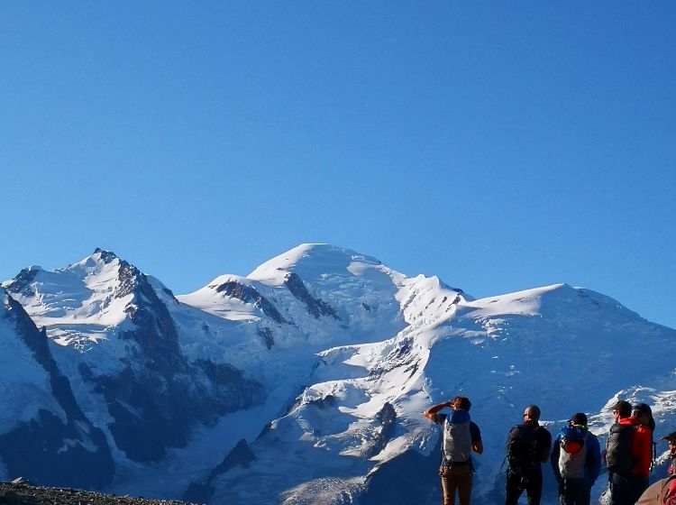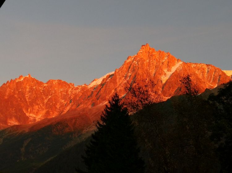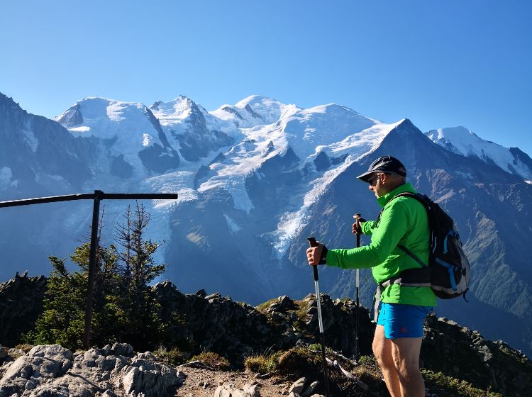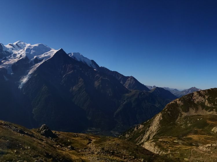 Face à un panorama exceptionnel, le Mont-Blanc et sa chaîne de sommets.