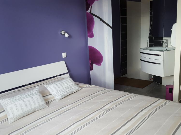 1 chambre avec 1 lit en 1.60 avec salle de bain attenante comportant une douche à l’italienne.
