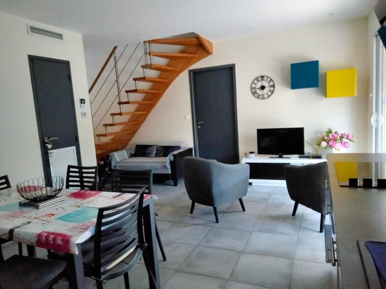 Cuisine américaine/séjour : cuisine intégrée entièrement équipée, lave vaisselle, réfrigérateur, congélateur, ect…
