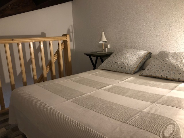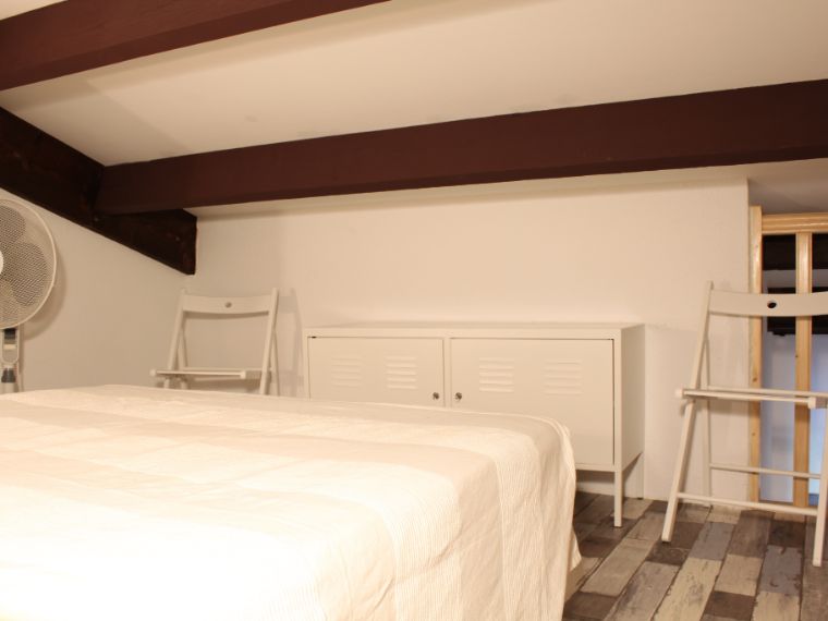 Voir les 22 photosL’entrée du logement est individuelle ; on entre par un couloir à droite duquel se trouvent la chambre, la salle de bains et les toilettes (séparées). Un escalier en bois mène à la chambre en mezzanine.