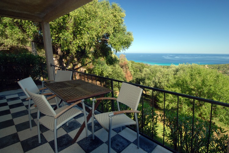 Vue panoramique sur mer depuis la terrasse et son salon de jardin