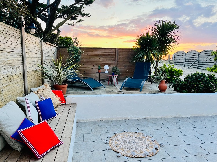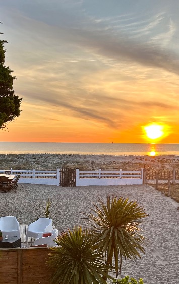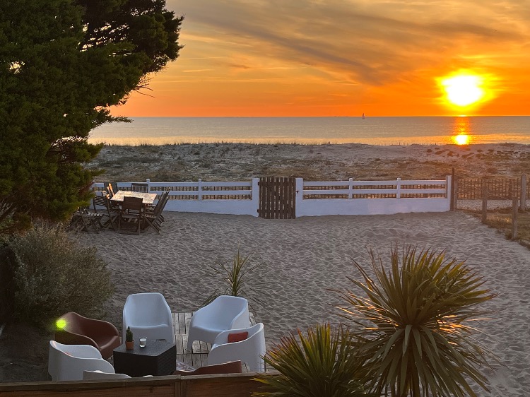coucher de soleil visible depuis la terrasse, la cuisine et le séjour