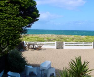 La maison bénéficie d’un emplacement privilégié : un chemin de sable bordé de dunes permet d’accéder directement à la plage depuis le jardin, sans toucher le bitume. Le port et le centre-ville de La Turballe sont accessibles à pied.
