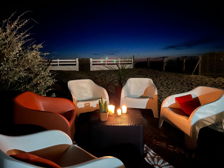 Voir les 34 photosDepuis la porte d’entrée du séjour vous apercevez le jardin de sable qui vous donne l impression d’être presque déjà à la plage. Grand table de salle à manger qui permet de se réunir à douze et dans la continuité un salon qui apporte des moments conviviaux autour d’un feu de cheminée l ‘hiver. La cuisine semi ouvert qui donne aussi sur le jardin de sable et terrasse permet de profiter de l ‘ambiance du salon. Au rdv wc et salle de douche . A l ‘étage 5 chambres dont 2 ont vue sur la mer et une chambre a sa propre sale de bain. 3 salles de bains au total. 5 chambres au total. Les différents espaces extérieurs permettent de profiter de l ‘ambiance plage et du calme, bercé par le bruit des vagues.