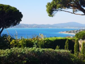 La villa à la vue dégagée à 180 ° côté sud donnant sur St Tropez. Vue côté nord sur les collines des Maures et le golf 18 trous de Sainte Maxime. La villa est à 5 minutes de la plage du casino de Ste Maxime, de la Nartelle et du parcours de golf. Elle est proche du centre ville tout en étant au calme sur les hauteurs du sémaphore (Villa implanté dans une impasse très tranquille).