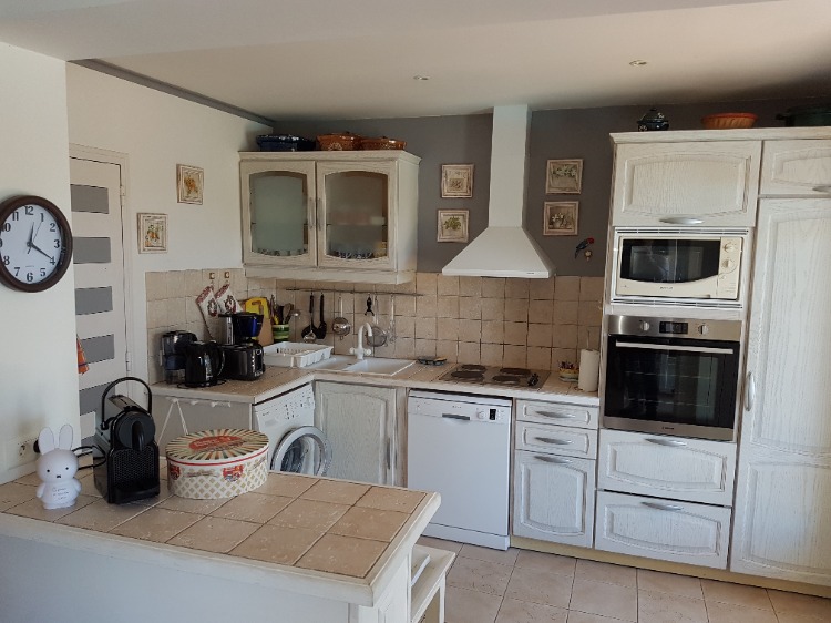 Cuisine américaine moderne entièrement équipée (lave linge, lave vaisselle , four à chaleur tournante, micro onde, …)