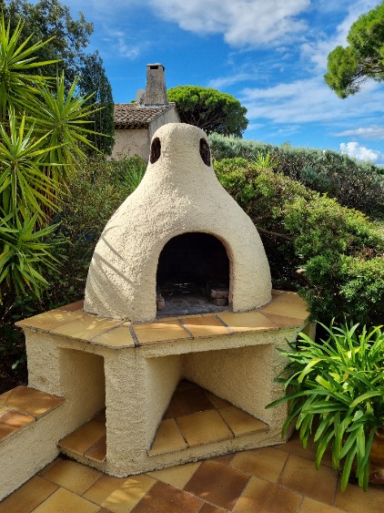 Villa de plein pied avec terrasse de 70 M2, couverte en parti, barbecue maçonné, tables et chaises en fer forgés, fauteuils de jardin. La terrasse se poursuit par une grande plage autour de la piscine avec bains de soleil. Vous trouverez un terrain de pétanque dans le jardin.