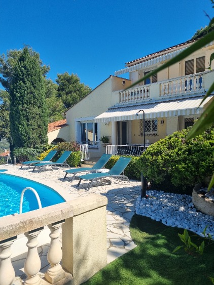 Une très jolie villa de vacances à Sainte-Maxime avec une belle vue mer. Propriété indépendante aux prestations exceptionnelles située dans le quartier résidentiel privé du Sémaphore. La villa est équipée pour 8 personnes habitable toute l’année (chauffage central + cheminée ouverte)