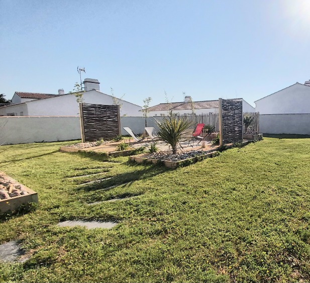 Le gîte dispose d’un grand terrain clos de 680 m², parfait pour profiter du plein air et des journées ensoleillées. Que ce soit pour un moment de détente sur la terrasse, un repas en extérieur ou simplement savourer la quiétude du lieu, le doux bruit des vagues vient parfois accompagner ces instants de vacances.